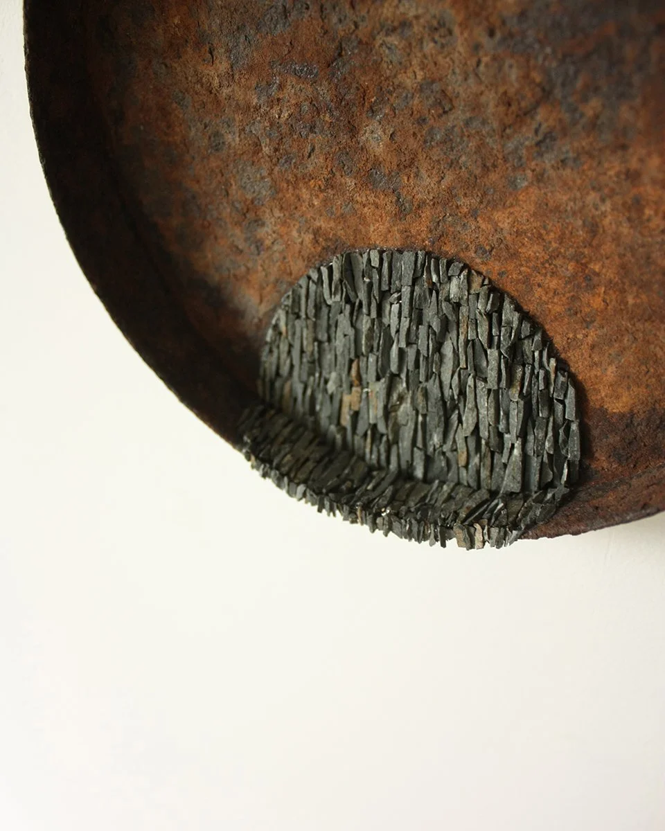 slate stone on decayed metal, 17 x 17 x 2 cm | 2020